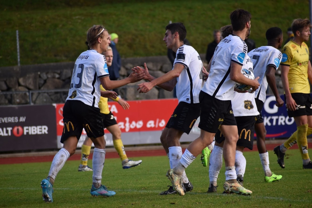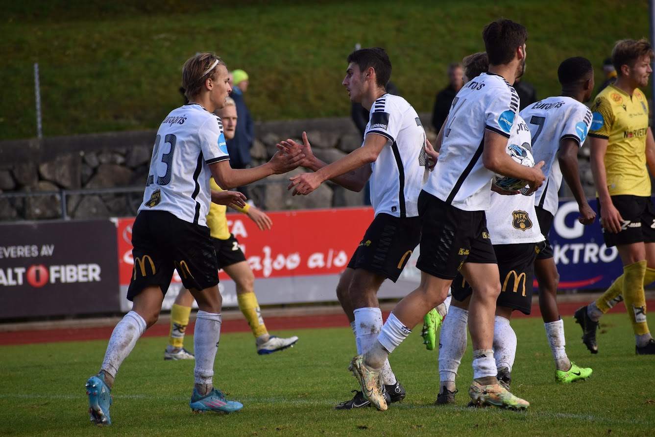 Thomas Myhre gjorde noen grep fra benken hvor Marius Hagen ble erstattet av Jesper Grundt. Grundt markerte seg umiddelbart da dro seg inn i boksen hvor han fant Noah Alexandersson umarkert. Supersvensken satt inn utligningen til 2-2 og MFK var tilbake på tabelltopp!