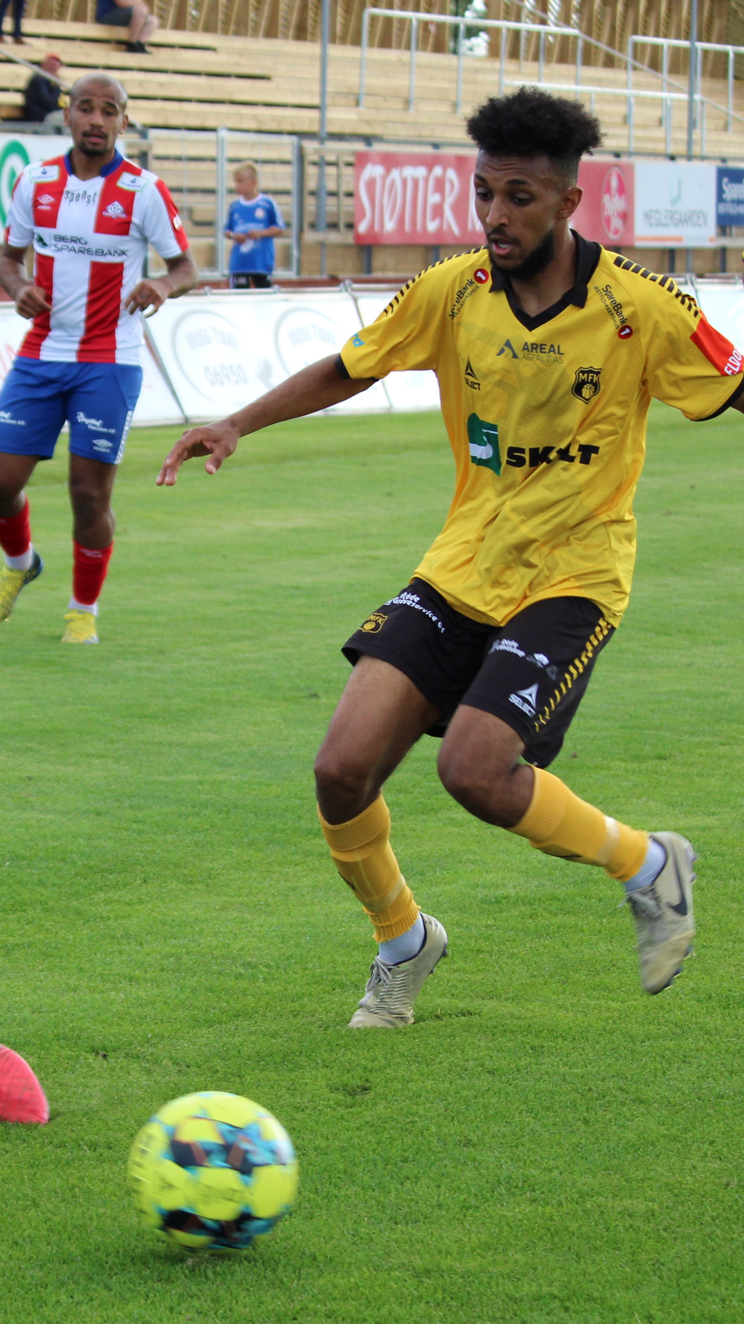 Det var hjemmelaget som var på start. MFK som spilte i hel hvite drakter for dagen kom bakpå fra start. Stian Andersen rotet det til i egen 16 meter, og dommer pekte korrekt på straffemerket.