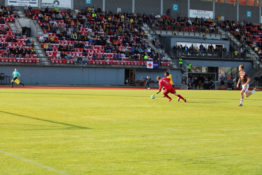 I innledningen virket begge lag kanskje litt preget av stundens alvor, men etter 23 minutter var det Kristian Strande som slo en ball opp mot Noah Alexandersson. Sistnevnte hoppet så over balle slik at Anas Farah som lå og lurte som gjedda i sivet på offsidelinja kom alene med Ørns sisteskanse Kristoffer Solberg.
