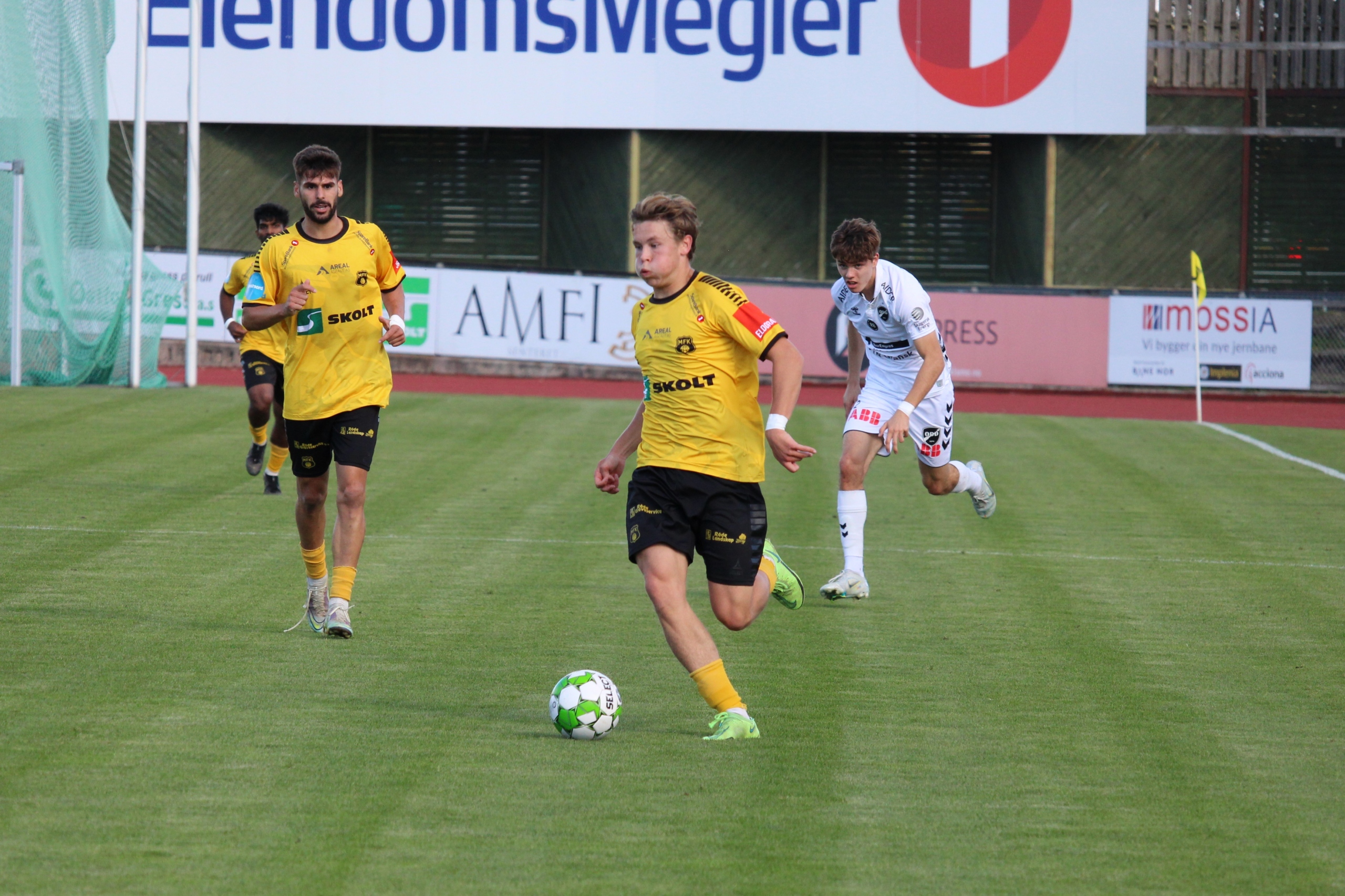 Etter halvtimen kom det scoringen imot som en følge av mye slurv. 15-åringen Faniel Tewelde fikk gå og gå uten at noen fra MFK gikk opp i press. Fra rundt 16 meter plasserte han ballen i krysset bak Mathias Eriksen Ranmark. Egentlig ut av ingenting. 1-1 på Melløs.