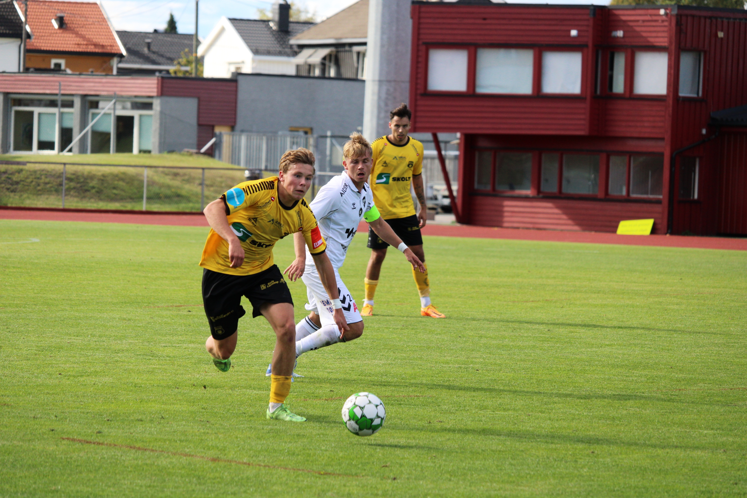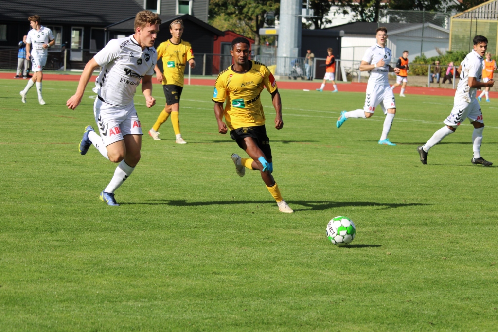 Gjestene fra Skien var farlig nære å ta med seg en ledelse til pause da Thomas Rekdals avslutning gikk stolpe ut på overtid i 1. omgang. Vi slapp heldigvis med skrekken.